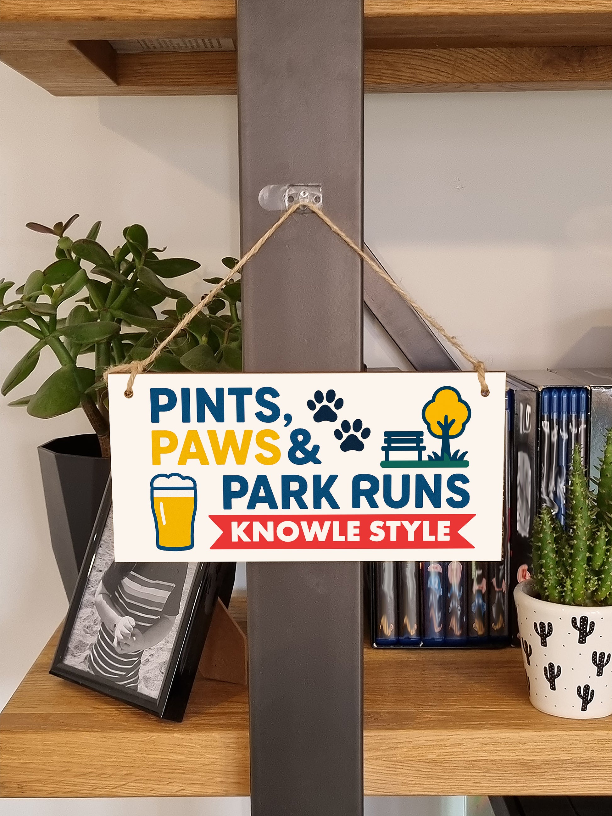 Show your love for dogs and your hometown pride with this charming hanging sign – perfect for any dog-loving home. Crafted from 6mm thick MDF and finished with a rustic hessian string, this decorative plaque is ideal for adding a personal touch to your home, hallway, kitchen, or even your garden shed. Each piece features a high-quality print on the front that celebrates the bond between humans and their furry companions – with a local twist! Each one is printed locally and made to order, adding that personal touch you won't find in high street stores. Product Features: Made from durable 6mm MDF which is lightweight yet sturdy and ensures a vibrant print. Ready-to-gift and includes a length of hessian string for easy hanging. Measures approximately 20cm x 10cm making it perfect for small spaces or gallery walls. Ideal for gifts, birthdays, housewarmings, or just because! Designed with dog lovers in mind.