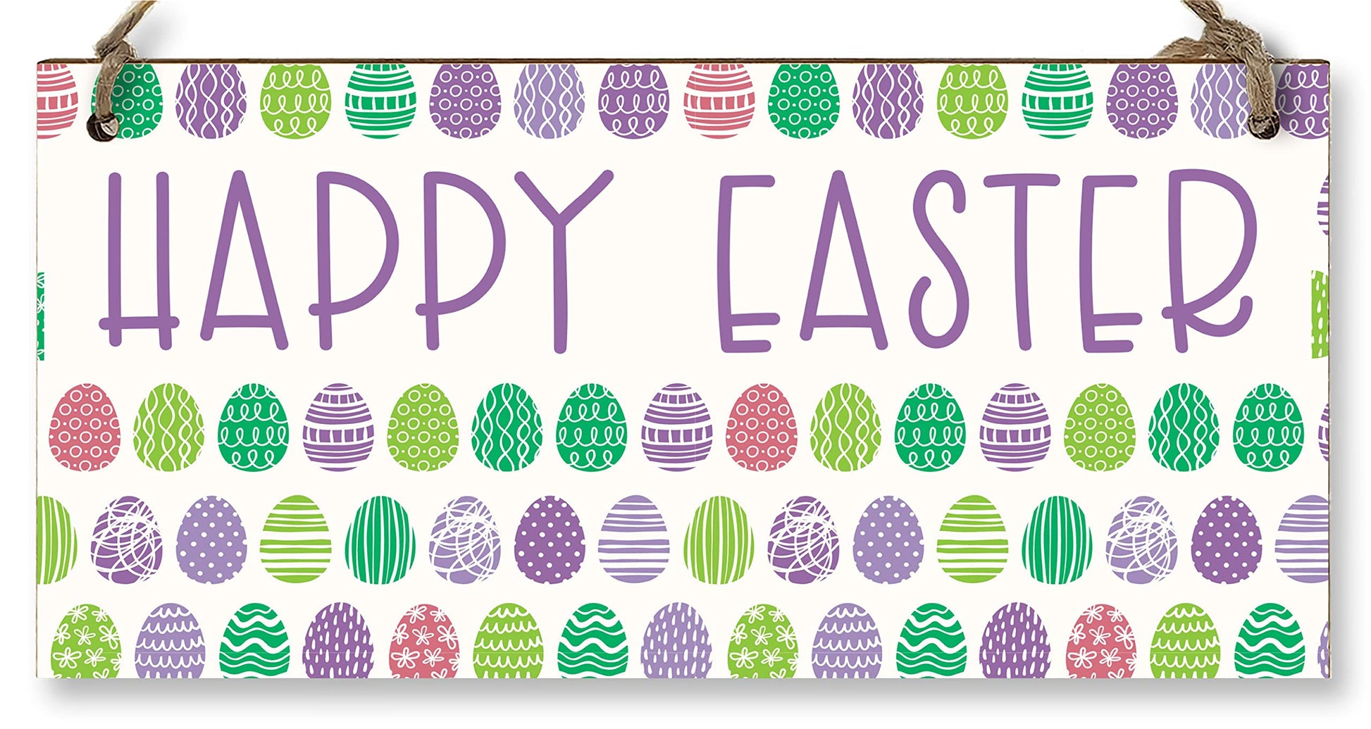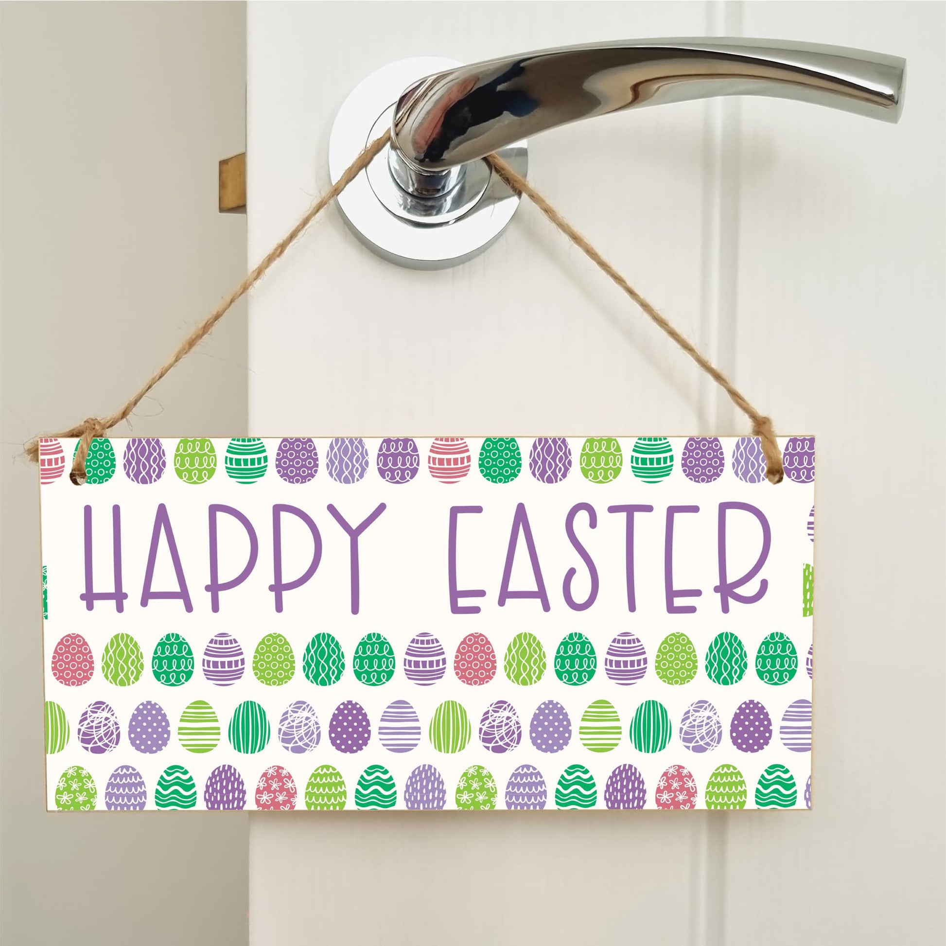 The Plum Penguin Handmade Wooden Hanging Wall Plaque Happy Easter Cute Fun Easter Sign Springtime Garden Kitchen Decoration